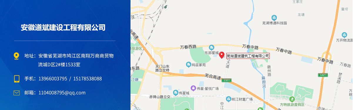 - 安徽道斌建設工程有限公司成立于2018年4月,主要從事工程施工、工程勞務、鋼結(jié)構(gòu)施工、市政公用施工,市政施工總承包貳級、地基基礎工程專業(yè)承包貳級、防水防腐保溫工程專業(yè)承包壹級、鋼結(jié)構(gòu)工程專業(yè)承包貳級、建筑裝修裝飾工程專業(yè)承包貳級、建筑工程施...